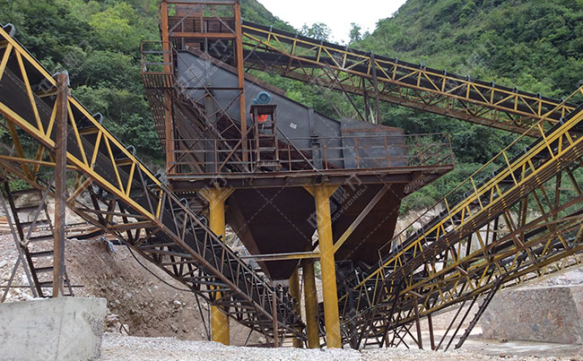 主要設備:振動給料機、重錘式破碎機、雙轉子制砂機、圓振動篩等