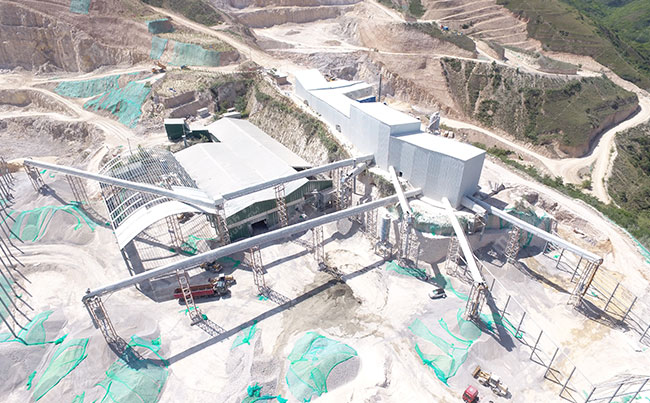 陜西省銅川市弘鑫鈣業有限公司時產600-800噸生產線由新鄉中譽鼎力EPC承包設計安裝,采用“給料機+重錘破+錘破+振動篩”的配置方案,此種骨料配置方案工藝簡單。不僅占地面積小,為用戶減少占地費用,在成品骨料方面,骨料精度高。