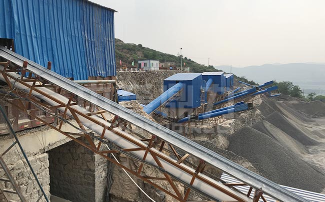山西長治市的這條石料廠環保生產線由中譽鼎力進行承包建設,于2017年3月建成投產。該石料廠由兩條生產線組成,分別是時產700噸的環保生產線和時產200噸的制砂生產線,兩條生產線同時運行時總產量可達到每小時900噸。兩條生產線為了保障符合行業的環保要求,都在設備以及輸送環節進行了封閉,以減少粉塵外溢的污染,并且還同時配置了除塵器設備,進一步減少粉塵的產生,也了石料廠的整體環境。